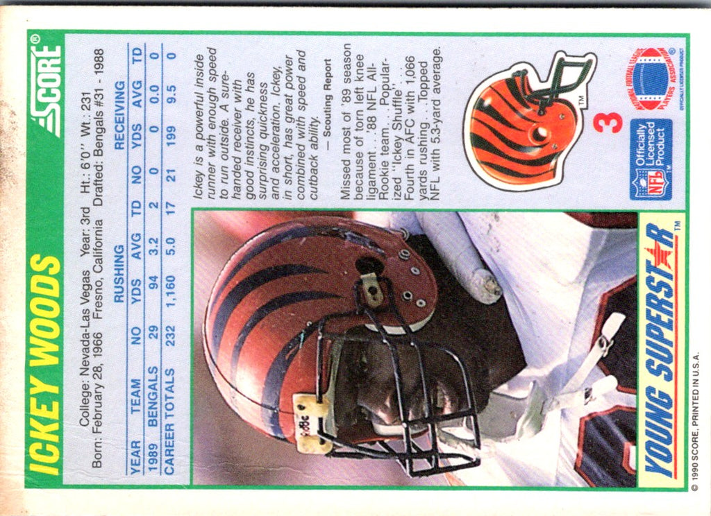 Description: 1990 Score Young Superstars Ickey Woods #3