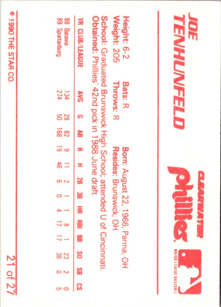 Description: 1990 Star Clearwater Phillies Joe Tenhunfeld #21