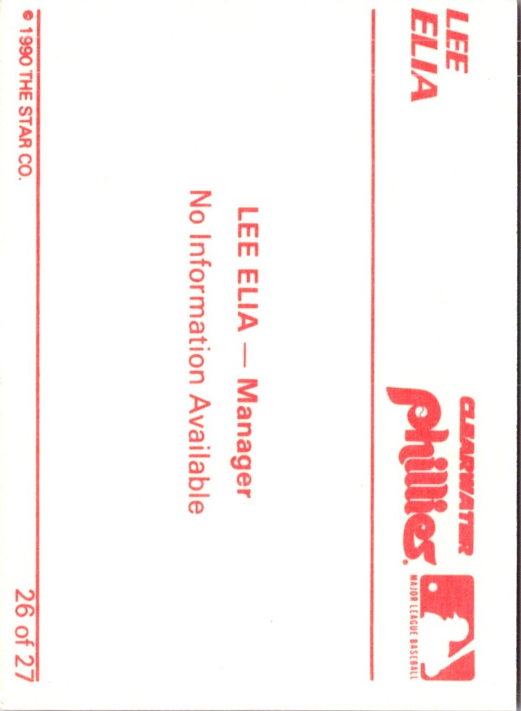 Description: 1990 Star Clearwater Phillies Lee Elia #26