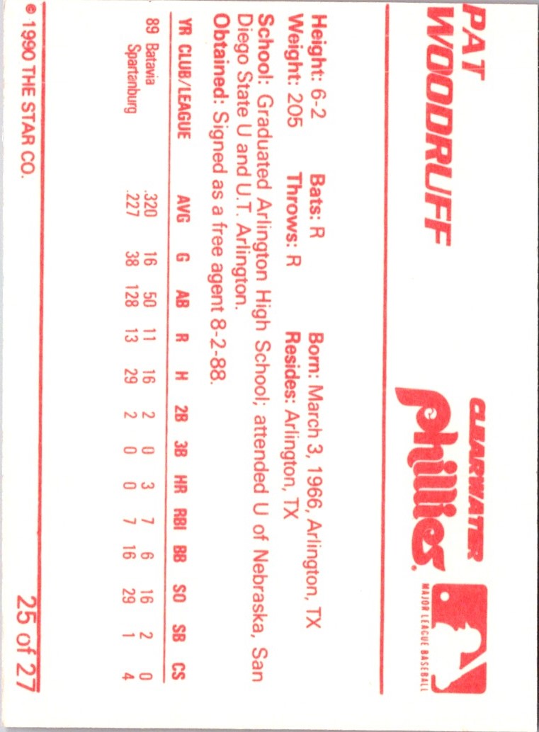 Description: 1990 Star Clearwater Phillies Pat Woodruff #25