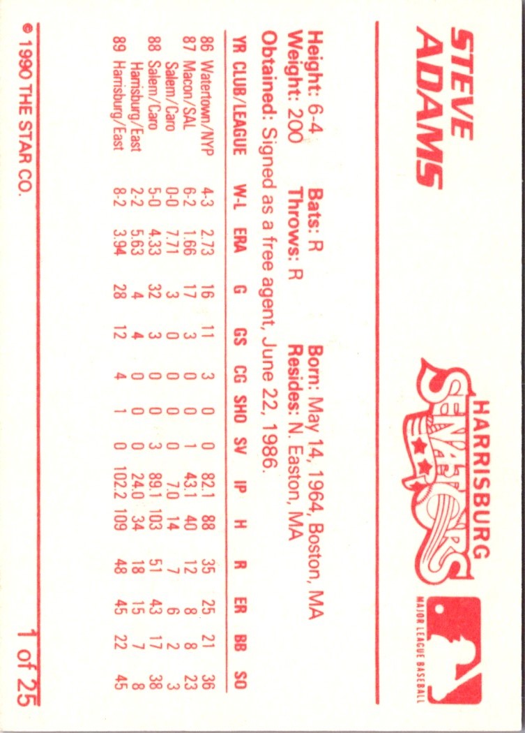 Description: 1990 Star Harrisburg Senators Steve Adams #1