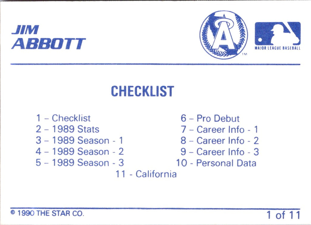 Description: 1990 Star Jim Abbott Jim Abbott #1