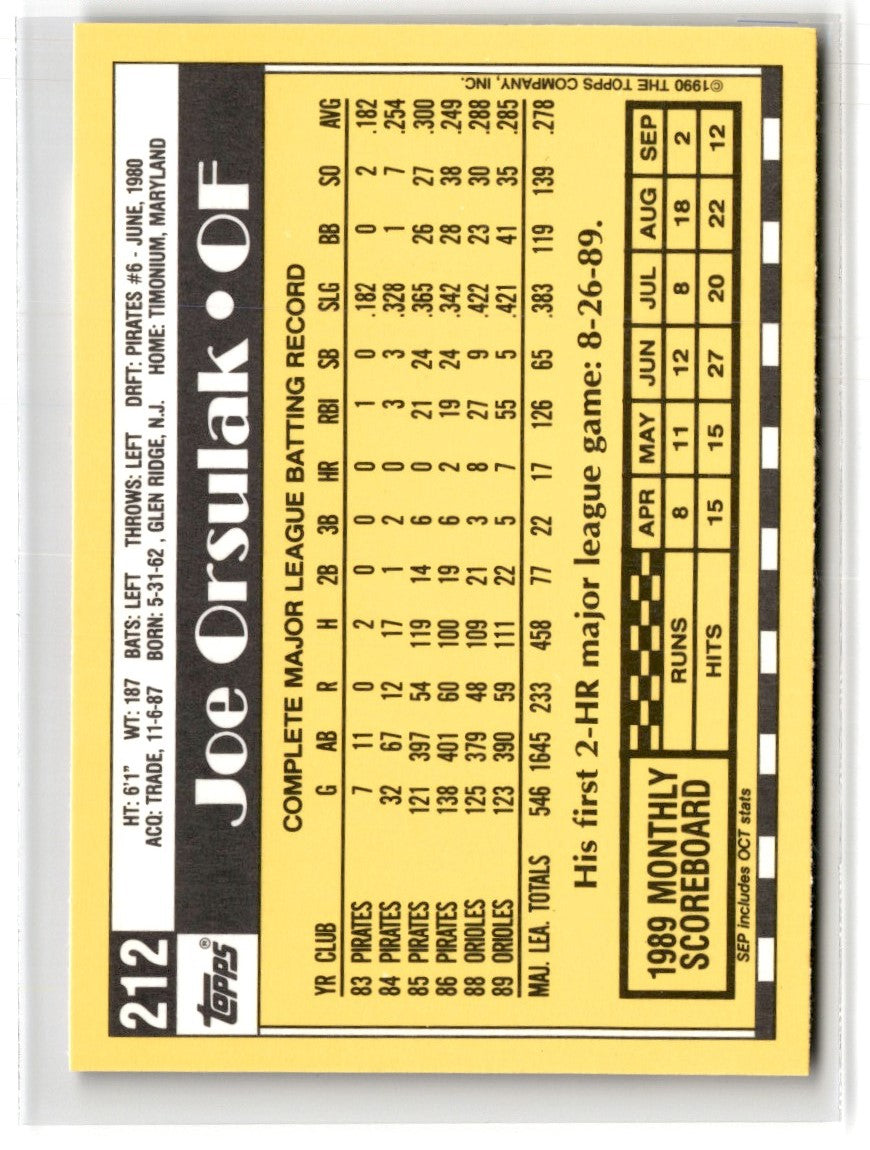 Description: 1990 Topps Tiffany Joe Orsulak #212