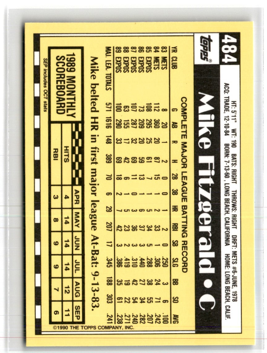 Description: 1990 Topps Tiffany Mike Fitzgerald #484