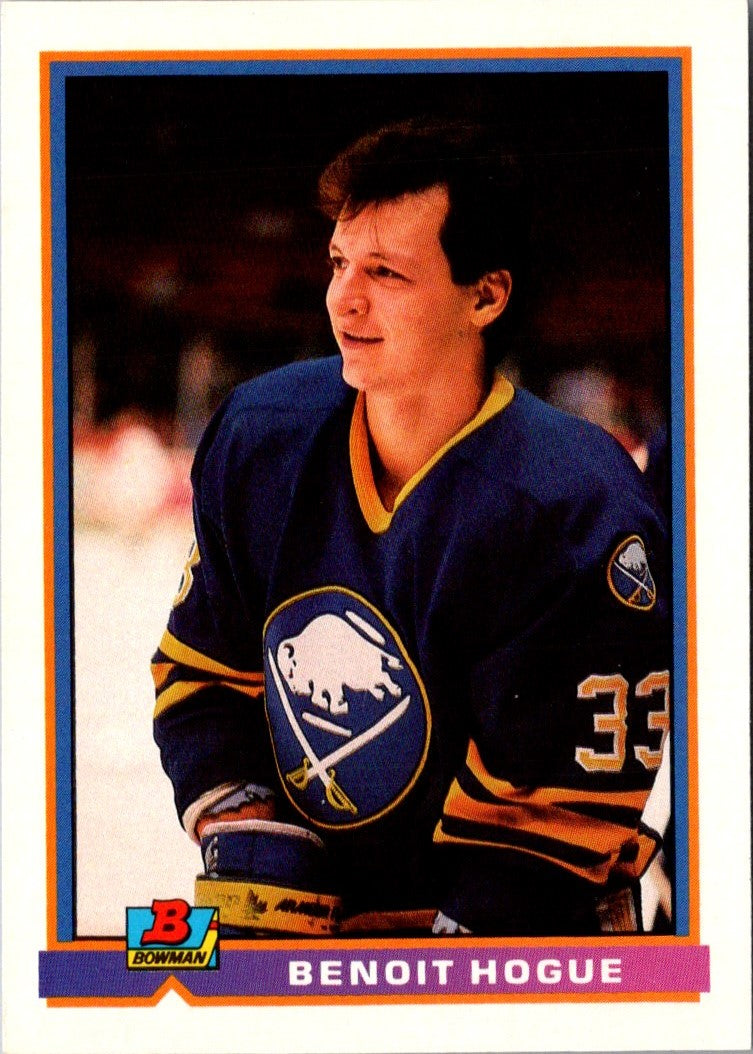 This 1991 Bowman Benoit Hogue #38 Buffalo Sabres card features an action shot of the dynamic center and a classic Sabres logo. This card is the perfect addition to any collection of Sabres memorabilia. Hogue was a fan favorite during his time in Buffalo, and this card celebrates his contributions to one of the NHL's most storied franchises. It's a must-have for any Sabres fan!