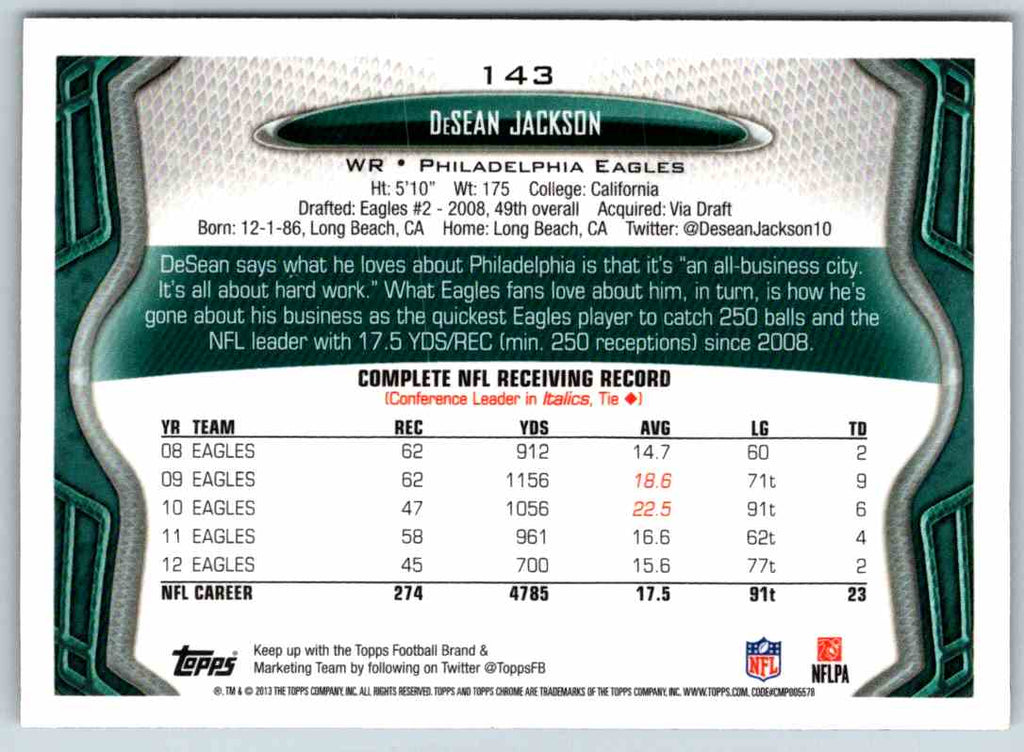This 1991 Bowman Best Football DeSean Jackson #143 is sure to make a great addition to any football card collection. Featuring a vibrant image of the former Philadelphia Eagles wide receiver in action, the card has a glossy finish and is printed on high-quality stock. With a wealth of stats and information on the back, this card is a must-have for any fan of the NFL! Get yours today and show your support for the Eagles!