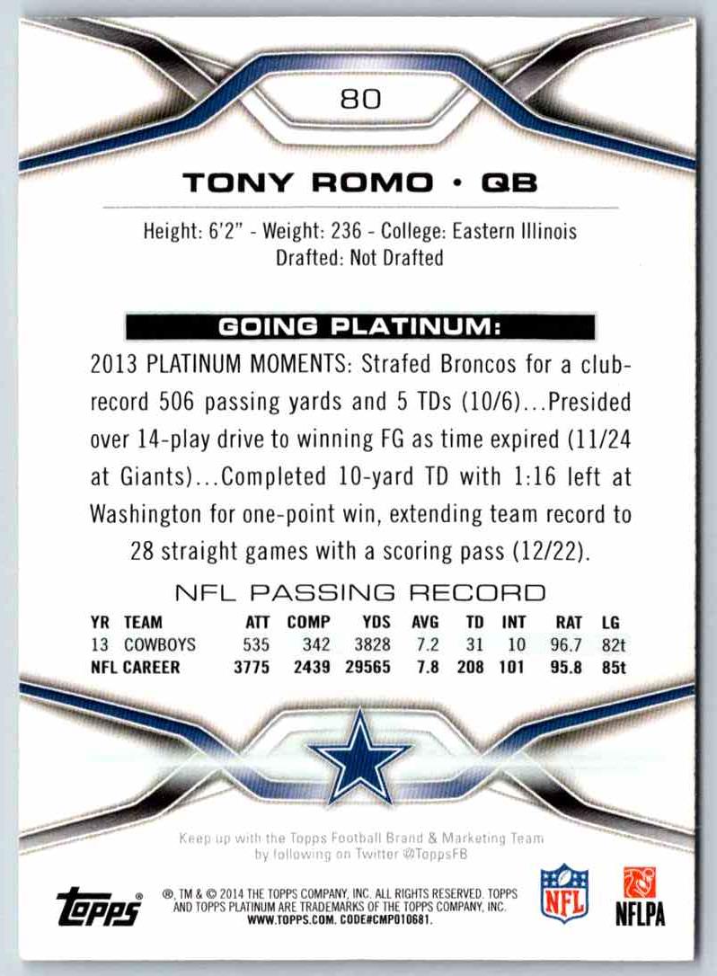 This is a 1991 Bowman Best Football card featuring Tony Romo, one of the greatest quarterbacks of all time. The card features a full color photo of Romo in action, as well as details of his career stats. It is an essential collectible for any Romo fan or football card collector. The card is in near mint condition, with sharp corners and vibrant colors. Add this card to your collection today and celebrate the legacy of one of the NFL's greatest players.