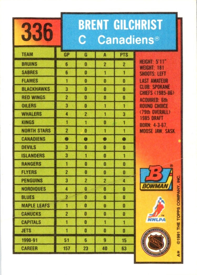 Brent Gilchrist was one of the top players in the NHL in the early 90’s. His 1991 Bowman card is a must-have for any hockey fan! Featuring a stunning close-up image of Gilchrist in his Montreal Canadiens uniform, this card captures the intensity of the game. Gilchrist’s stats are listed on the back, along with a detailed biography. This card is a great way to remember one of the NHL’s greatest players and add to your collection. Pick up your 1991 Bowman Brent Gilchrist #336 card today!