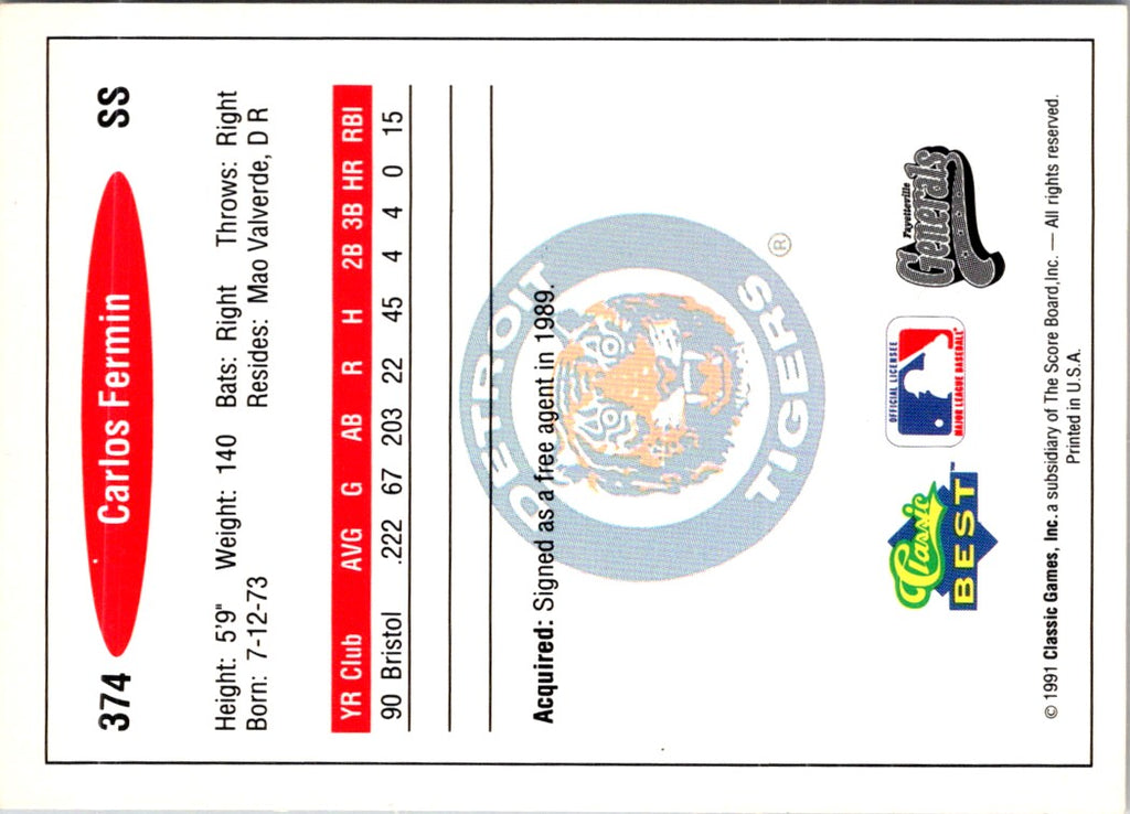 1991 Classic Best Carlos Fermin #374