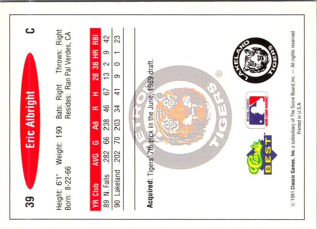 Description: 1991 Classic Best Eric Albright #39