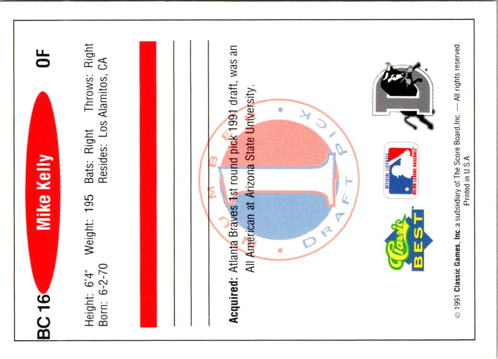 Description: 1991 Classic Best Gold Bonus Mike Kelly #BC16