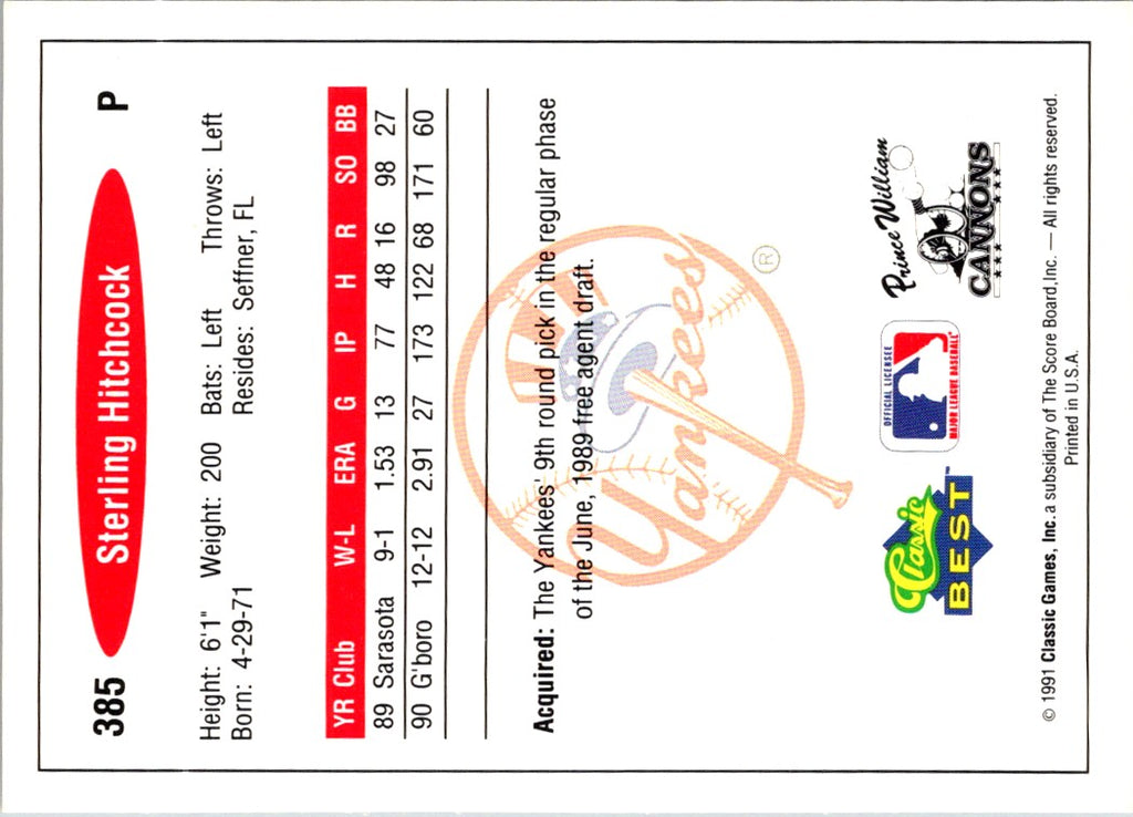 Description: 1991 Classic Best Sterling Hitchcock #385