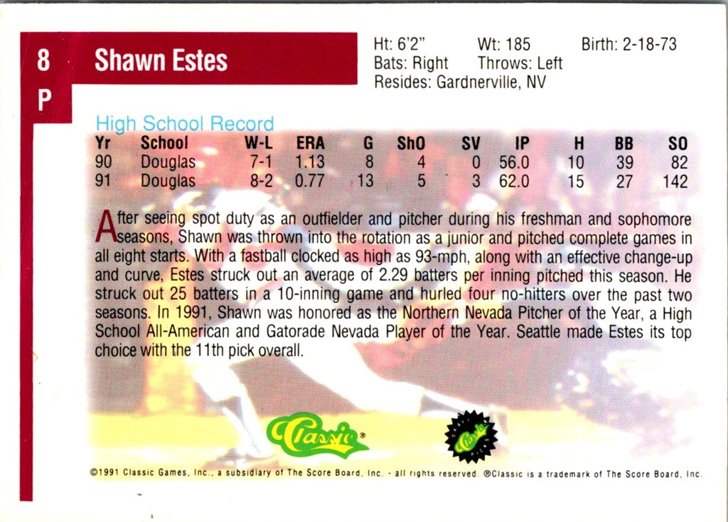 This 1991 Classic Draft Picks Shawn Estes Seattle Mariners card is the perfect addition to any collector’s portfolio! Featuring a full-color glossy photo of Estes in his familiar Mariners uniform, this card is sure to make a great display piece. Estes was a key part of the Mariners’ roster in 1991, and this card captures the excitement of his rookie season. It’s a must-have for any fan of the Seattle Mariners and a great way to add to your collection. Get your 1991 Classic Draft Picks Shawn Estes Seattle Mariners card today!