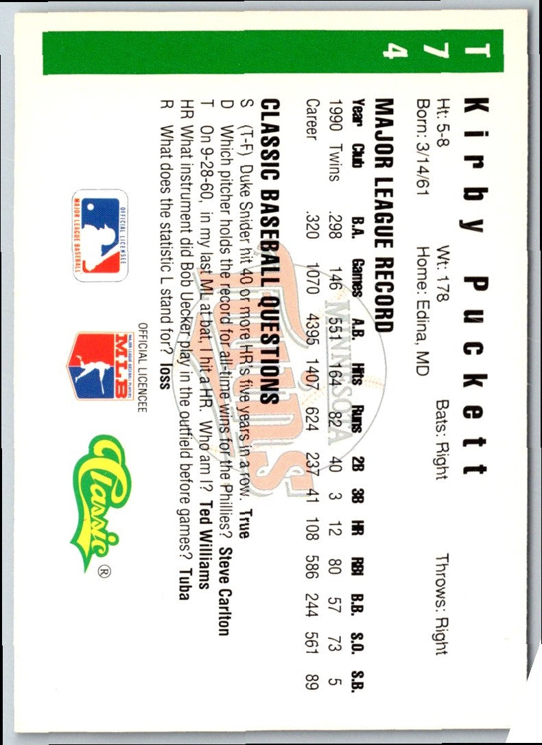 1991 Classic III Kirby Puckett #T74