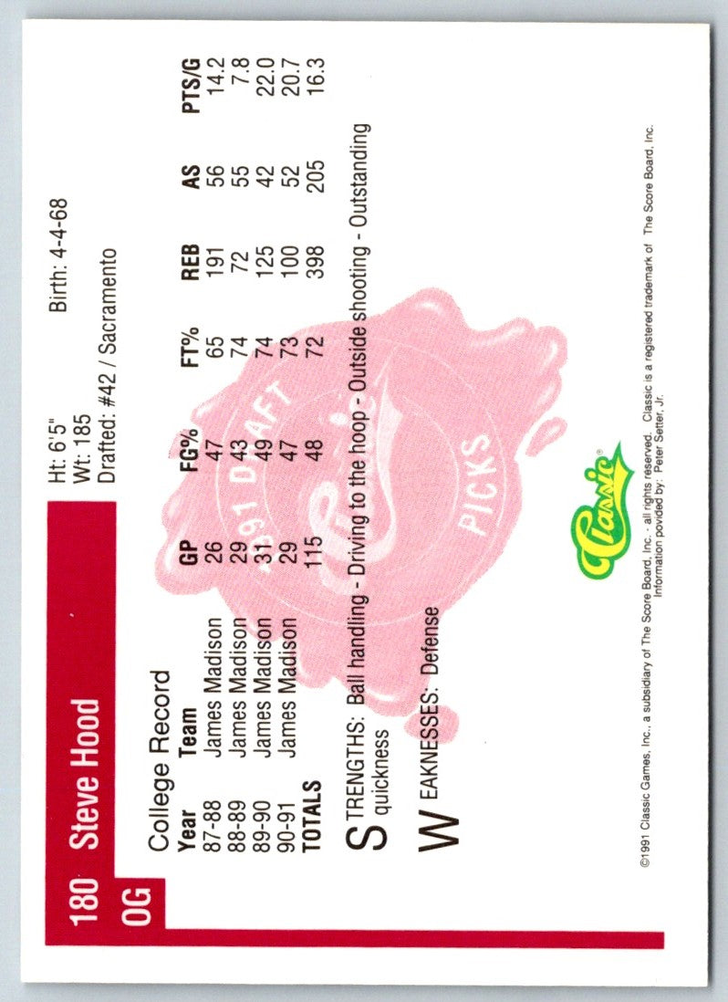 This 1991 Classic Steve Hood #32 James Madison Dukes card is a true collector's item. Featuring Steve Hood in his Dukes jersey, this card is sure to be a hit for any fan. The vibrant colors and intricate details of the card will make it the centerpiece of any collection. Whether you're a fan of Steve Hood, the James Madison Dukes, or just a collector of vintage cards, this card is a must-have. Don't miss out on the opportunity to add this card to your collection!