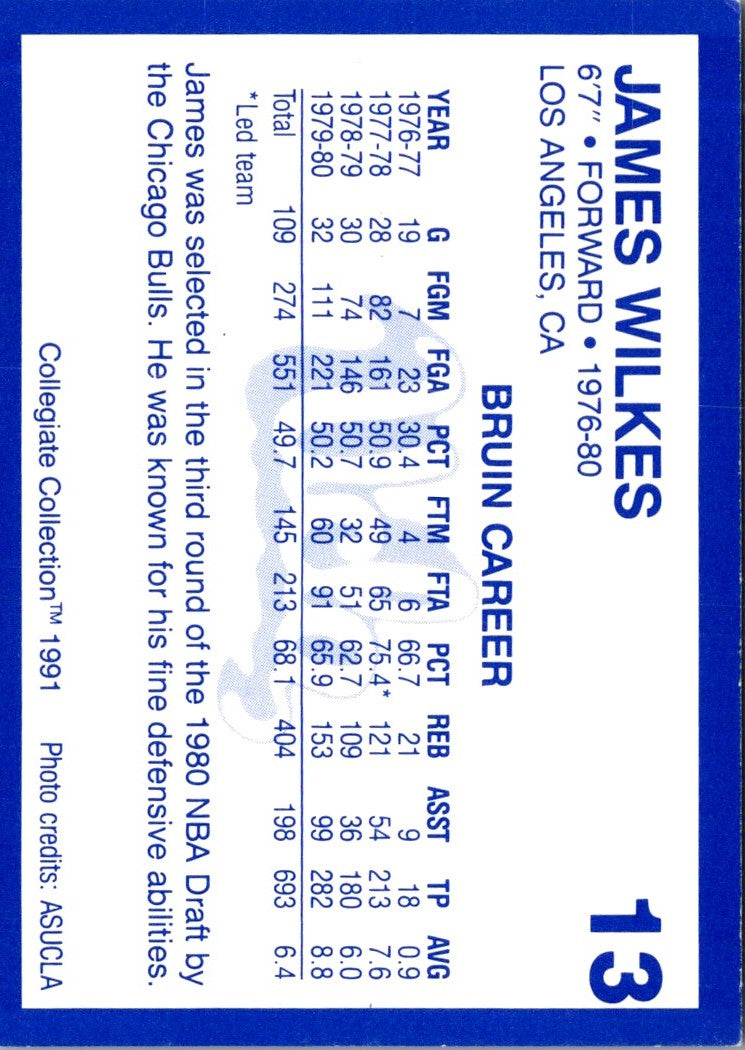 1991 Collegiate Collection UCLA James Wilkes #13