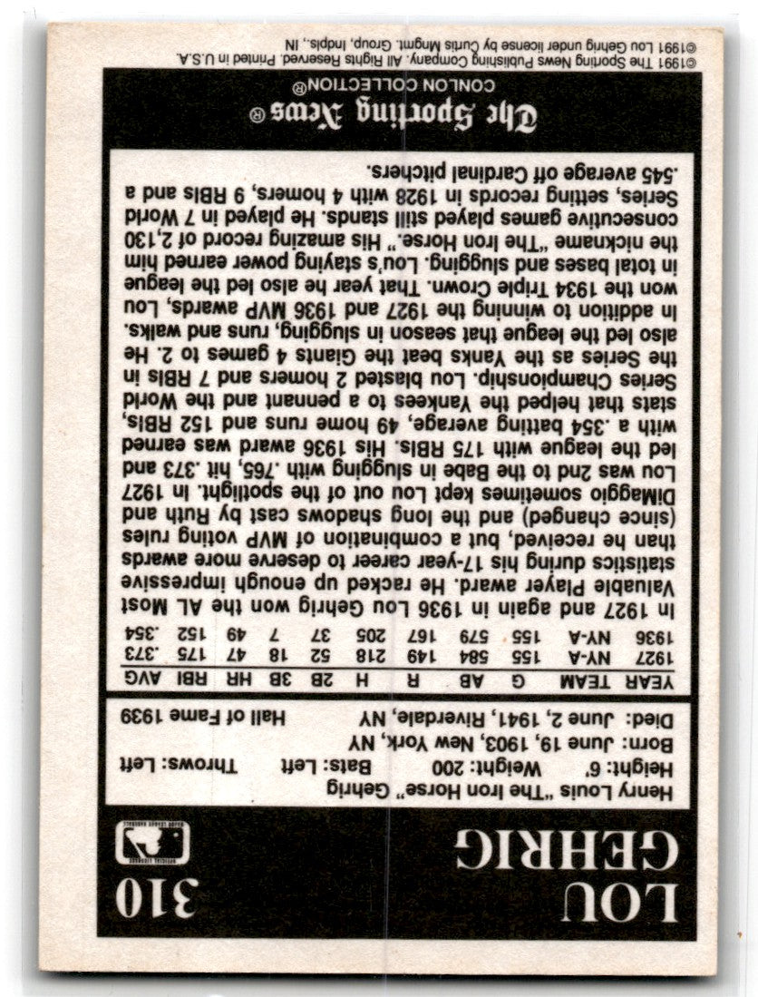 1991 Conlon Collection TSN Lou Gehrig #310