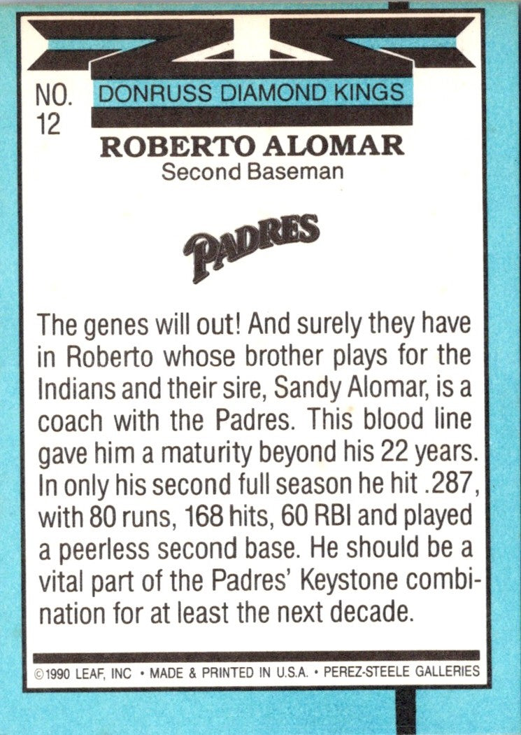 Description: 1991 Donruss Super Diamond Kings Roberto Alomar #12