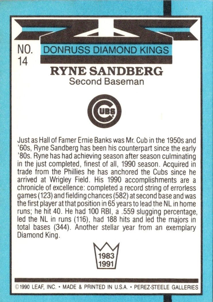 Description: 1991 Donruss Super Diamond Kings Ryne Sandberg #14