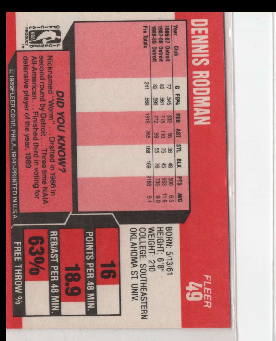 Own a piece of NBA history with the 1991 Fleer Wheaties Dennis Rodman #16 Detroit Pistons card! This special card features the 1990s era Rodman sporting the Pistons' classic teal uniform. One of the most iconic players of the era, Rodman was an essential part of the team's success and earned himself 5 NBA Championships during his career. A great gift for any basketball enthusiast, this card is sure to be a treasured keepsake for years to come. Add it to your collection and relive the glory days of the Detroit Pistons!