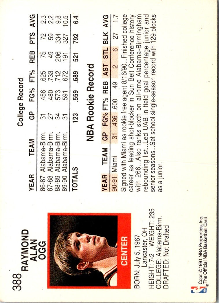 Description: 1991 Hoops Alan Ogg #388 Rookie