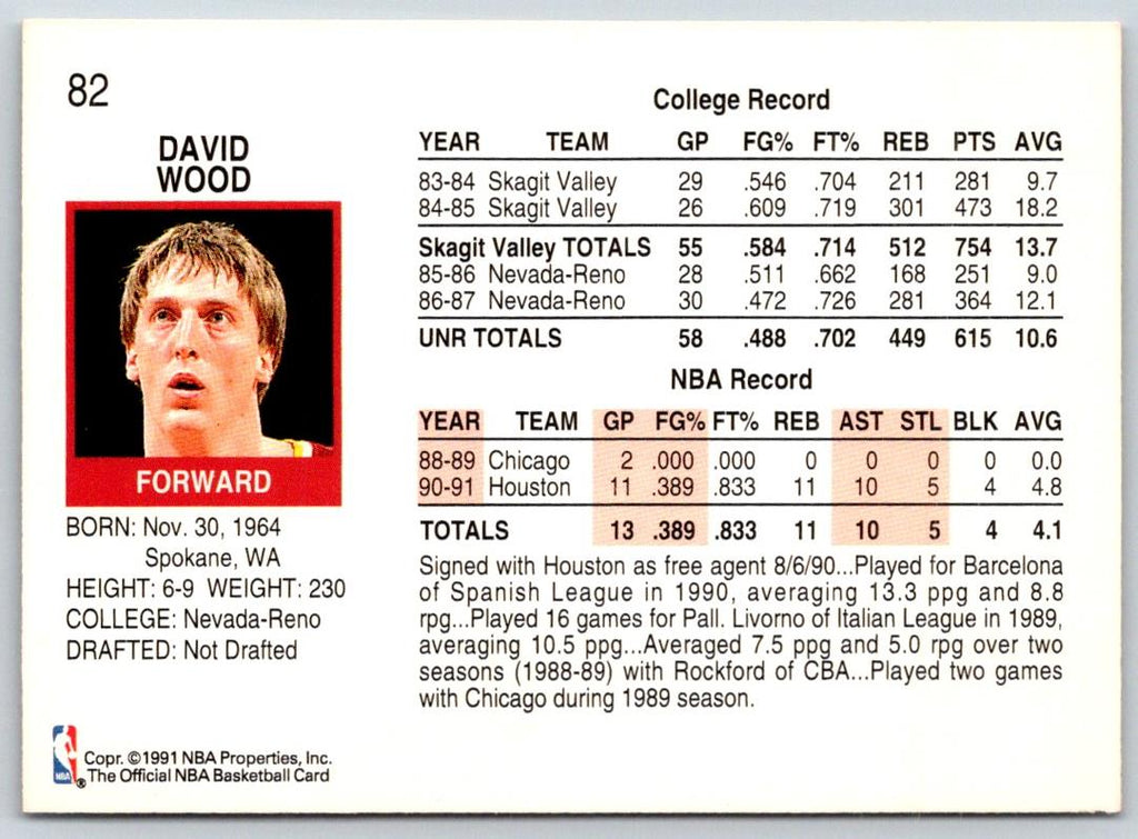 This 1991 Hoops David Wood #82 Houston Rockets card is a must have for any serious collector of NBA memorabilia. The card features a full-color photo of Wood, a two-time NBA All-Star and one of the most beloved players in Rockets history. On the back, you'll find all of Wood's career stats, highlights, and accolades. It's a fantastic piece of sports memorabilia that will look great in any collection!