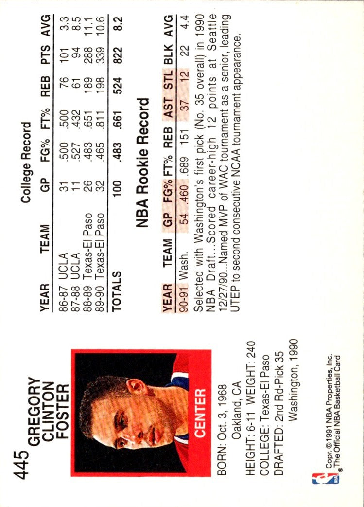 Description: 1991 Hoops Greg Foster #445