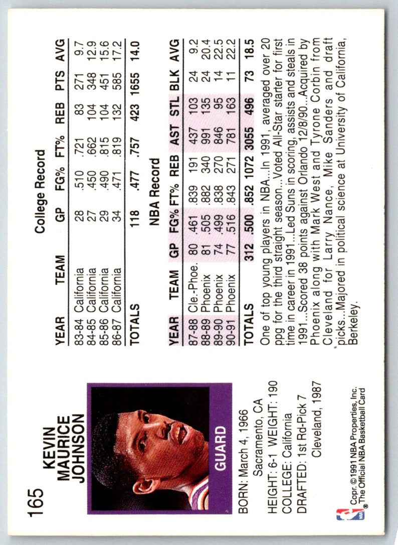 The 1991 Hoops Kevin Johnson #165 Phoenix Suns card is an essential piece for any basketball fan. As a six-time NBA All-Star, Johnson was a cornerstone of the Phoenix Suns for years, and this card is a perfect way to commemorate his time with the team. The card features a vibrant portrait of Johnson in full Suns uniform, and it's a great way to show your support for one of the NBA's greatest players. Add this card to your collection and celebrate the legacy of Kevin Johnson with the Phoenix Suns.