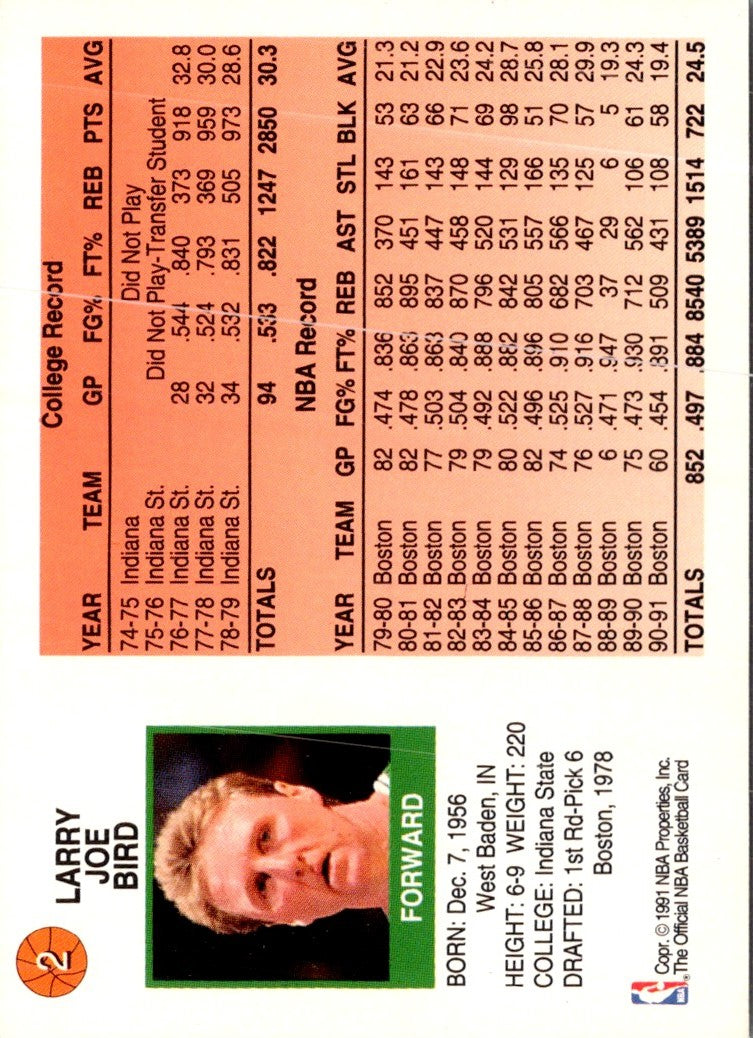 This 1991 Hoops Larry Bird #2 card features a great action shot of the legendary Boston Celtic. It's a must-have for any fan of the NBA, or anyone looking to add a piece of sports history to their collection. The card is in Near Mint/Mint condition, making it a valuable item for any collector. With its vibrant colors and crisp details, it is sure to make an excellent addition to any basketball card collection. Bring home a piece of history and add this card to your collection today!