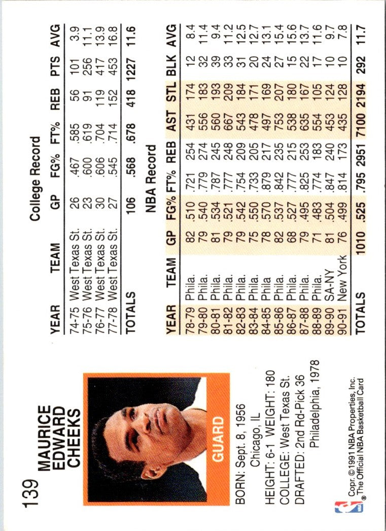 Description: 1991 Hoops Maurice Cheeks #139