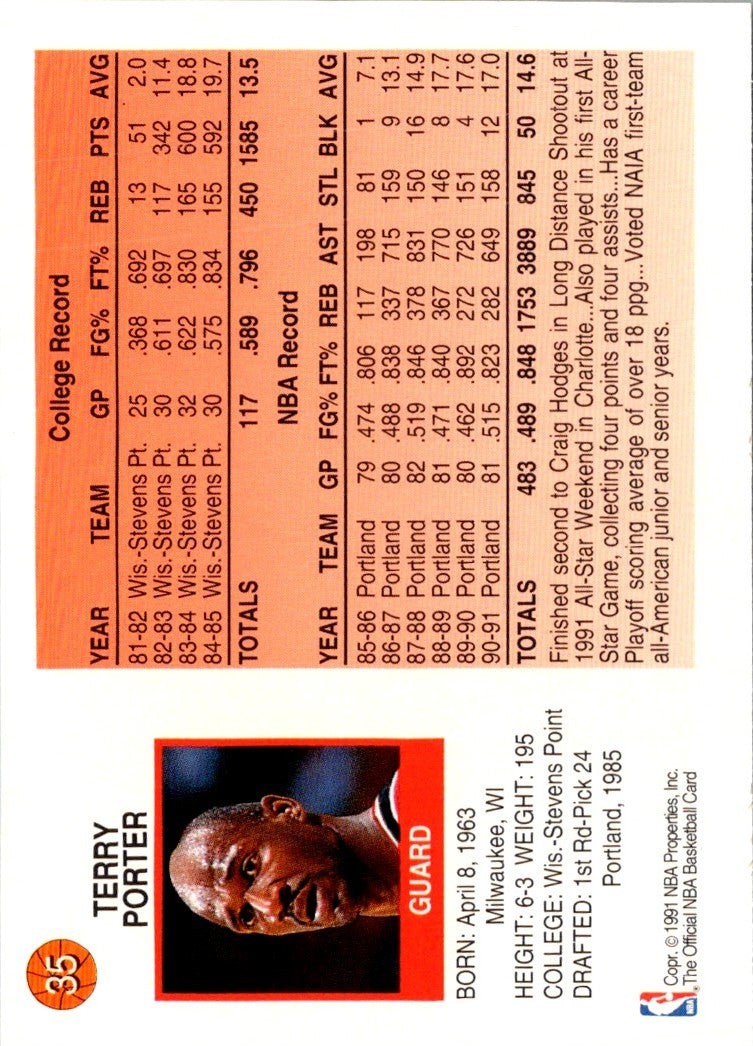 The 1991 Hoops McDonald's Terry Porter #35 Portland Trail Blazers card will be a great addition to any sports fan's collection. Featuring a full-color photo of Terry Porter on the front and his vital stats on the back, this card is a must-have for any Trail Blazers fan. The Hoops McDonald's card series from 1991 is very collectible and this one featuring Terry Porter is sure to be a prized possession. Add this card to your collection today and celebrate one of the NBA's all-time greats!