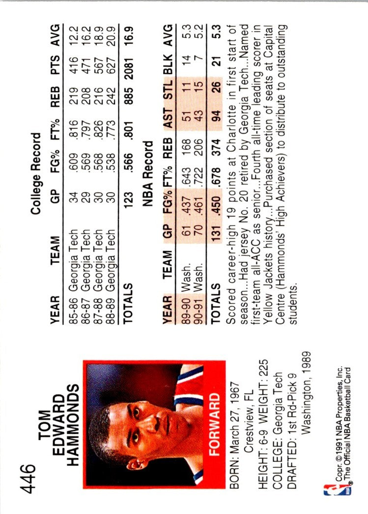 Description: 1991 Hoops Tom Hammonds #446