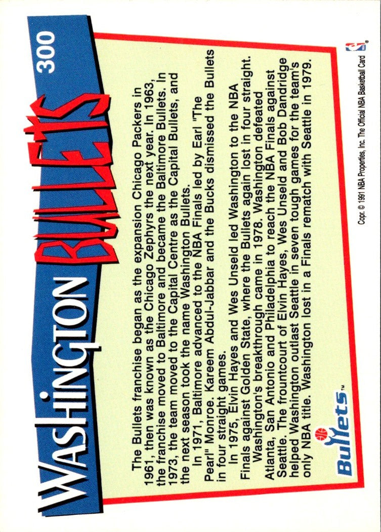 This 1991 Hoops Washington Bullets #300 card is a must-have for any basketball fan or collector. Featuring the Washington Bullets in all their glory, this card will make a great addition to any collection. The card is printed on glossy stock paper for a high-quality finish and features a full-colour photo of the team. It is a great way to show your love for the Washington Bullets and commemorate the team's 1991 season.