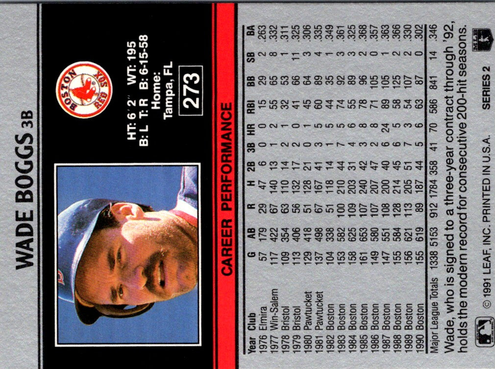 Description: 1991 Leaf Wade Boggs #273
