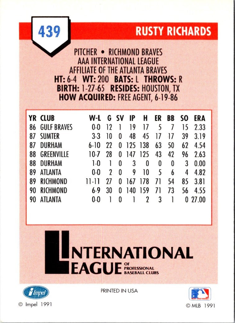 Description: 1991 Line Drive AAA Rusty Richards #439