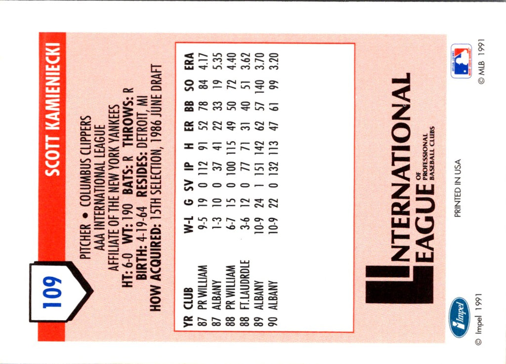 Description: 1991 Line Drive AAA Scott Kamieniecki #109