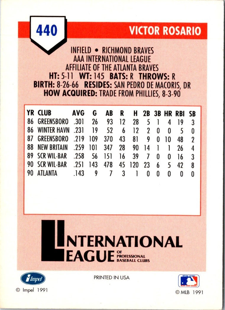 Description: 1991 Line Drive AAA Victor Rosario #440