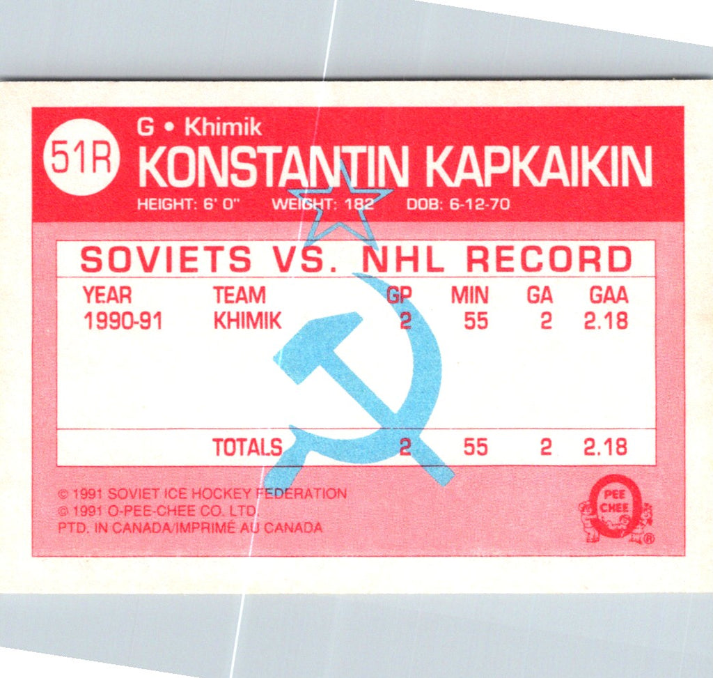 1991 O-Pee-Chee Central Red Army Konstantin Kapkaikin #51R