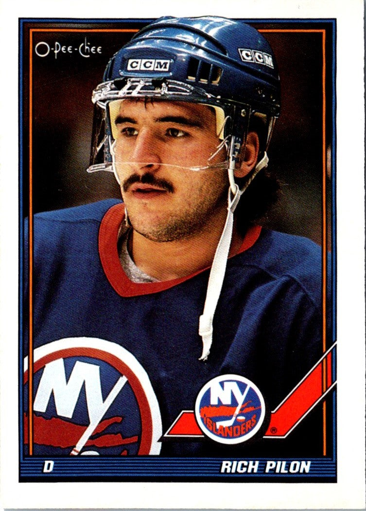 The 1991 O-Pee-Chee Rich Pilon #379 New York Islanders card is a must-have for any NHL fan. This classic card features a great action shot of Pilon in his Islanders uniform. The card features bright colors and is in very good condition. It's a great way to show your support for the team or add to your collection. This card is sure to be cherished for years to come. Grab your O-Pee-Chee Rich Pilon #379 New York Islanders card today!