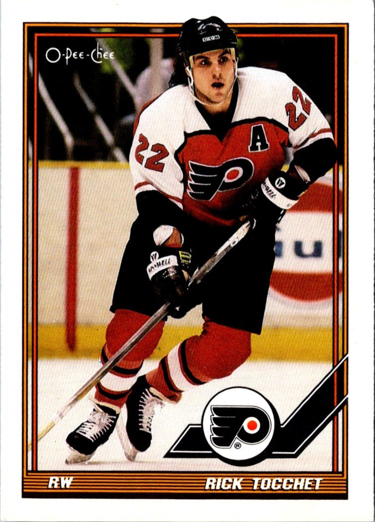 Rick Tocchet was one of the most feared players in the NHL during the late 80s and early 90s. This 1991 O-Pee-Chee trading card features Phoenix Coyotes forward Rick Tocchet, ready to take on all comers. The card is in pristine condition and is an excellent addition to any hockey fan’s collection. Show your support for the Philadelphia Flyers and add this classic card to your collection today!