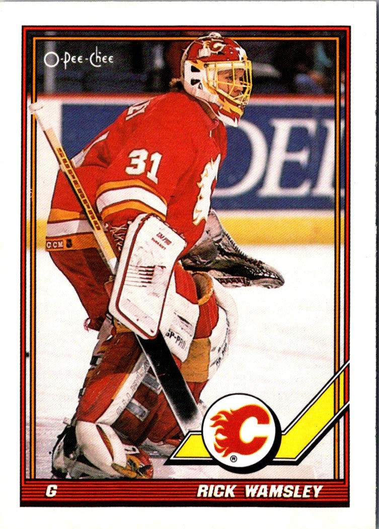 This 1991 O-Pee-Chee Rick Wamsley #459 Calgary Flames trading card is a must-have for any sports fan or collector! Featuring a vibrant and detailed image of the former Flames goalie, this card is sure to make a great addition to any collection. Featuring a unique design with a glossy finish, this card is sure to stand out from the rest. As one of the most popular hockey players of his era, Rick Wamsley was an important part of the Calgary Flames. Show your support and appreciation by adding this card to your collection today!
