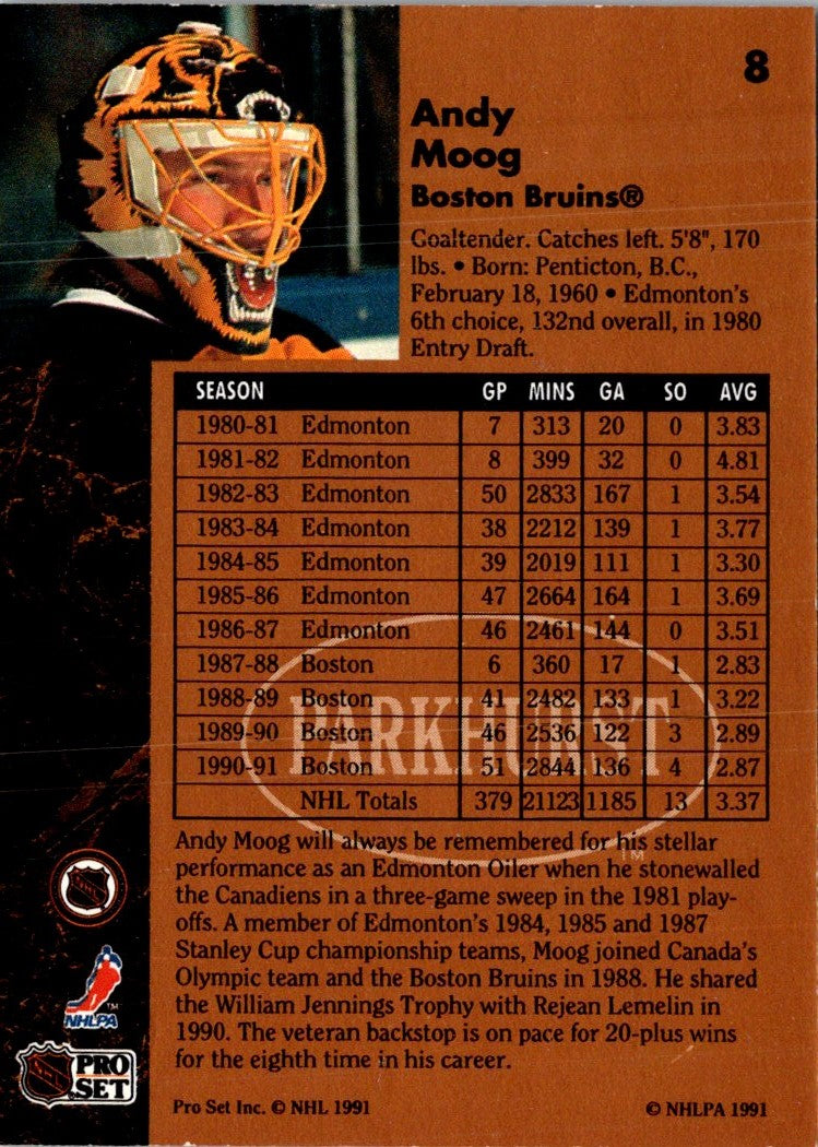 This 1991 Parkhurst Andy Moog #8 Boston Bruins card is a must-have for any hockey fan! Featuring a full-color photo of Andy Moog in action, this card is sure to bring back memories of when he was one of the most feared goaltenders in the league. Perfect for any collector or Bruins fan, this card is sure to be a great addition to any collection. Get it before it's gone!
