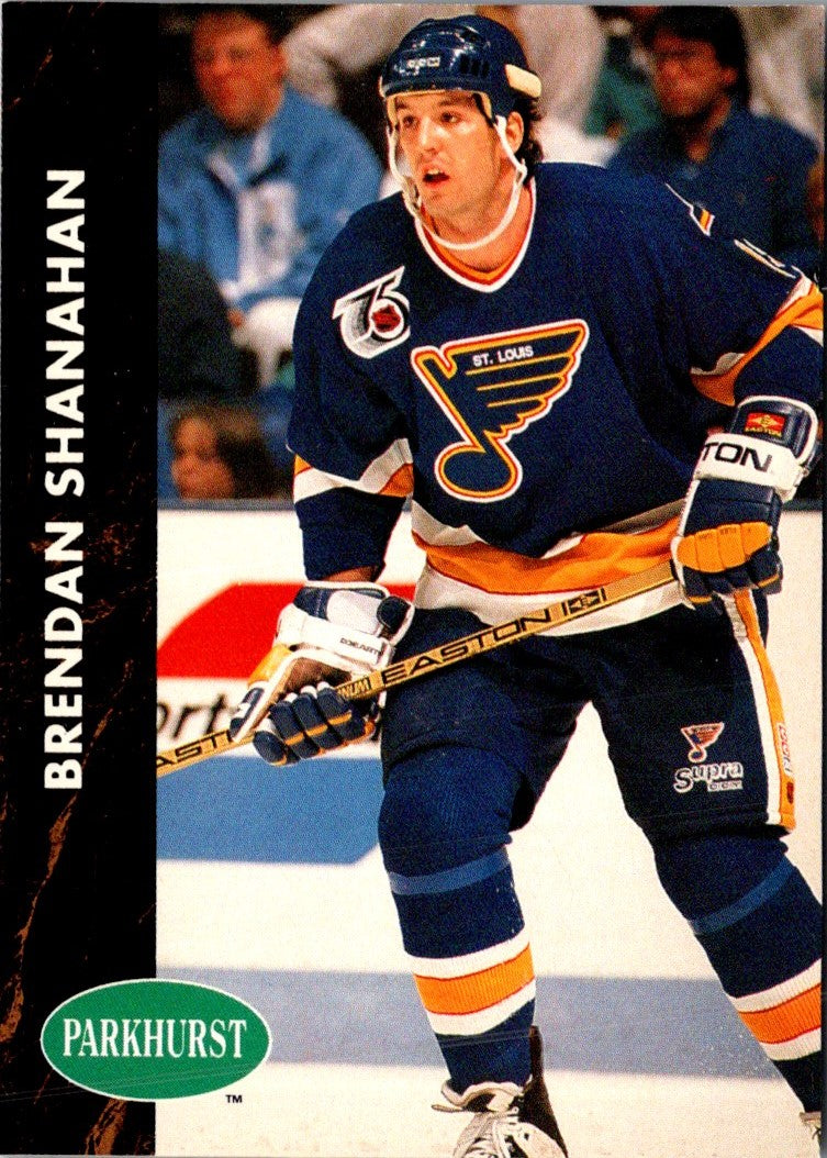 This 1991 Parkhurst Brendan Shanahan #153 St. Louis Blues hockey card is an essential piece for any hockey card collector! Featuring an action shot of Shanahan in his Blues jersey, the card is in great condition with sharp edges and no signs of wear. Show off your hockey card collection with this classic card that features Brendan Shanahan, one of the greatest players of the 90s. Add this card to your collection today!