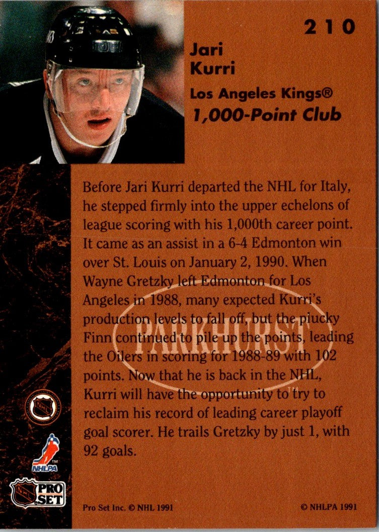 This 1991 Parkhurst Jari Kurri #210 Los Angeles Kings card is a must-have for any hockey fan. Celebrate the legendary career of the five-time Stanley Cup champion with this classic card. Showcase it in your collection and relive the memories of one of the greatest players of all-time. This card features a high-quality image of Jari Kurri on the front, with a detailed biography on the back. Make sure you add this timeless item to your collection today!