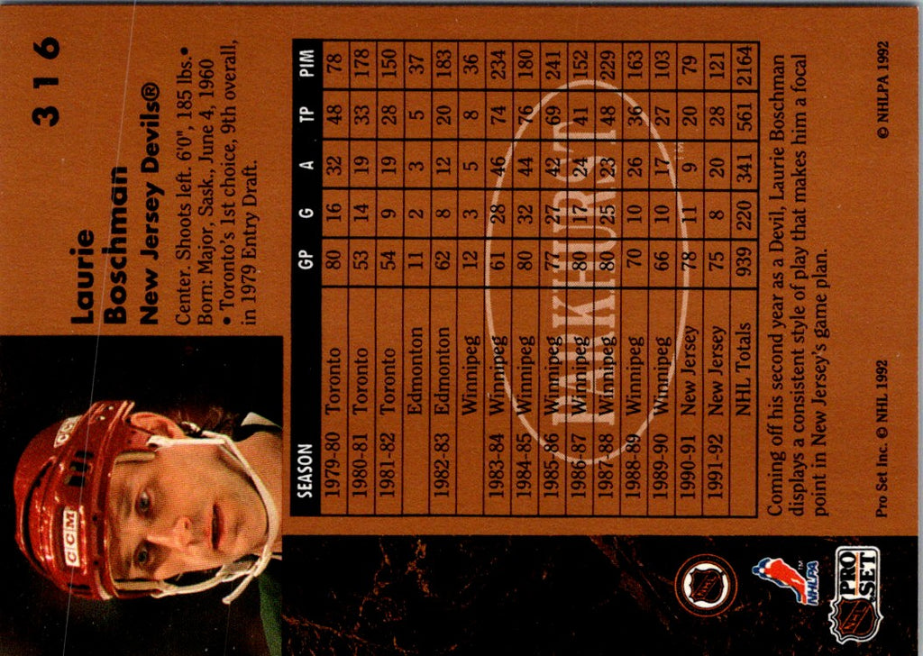 This 1991 Parkhurst Laurie Boschman New Jersey Devils card is a great collectible for any hockey fan! Featuring a classic photo of Boschman in action, this card is sure to make a great addition to any collection. Boschman was a leader for the Devils and known for his toughness and dedication. With sharp corners and clean edges, this card is sure to stand out in any collection. Add this to your collection today and commemorate a great player from the past!