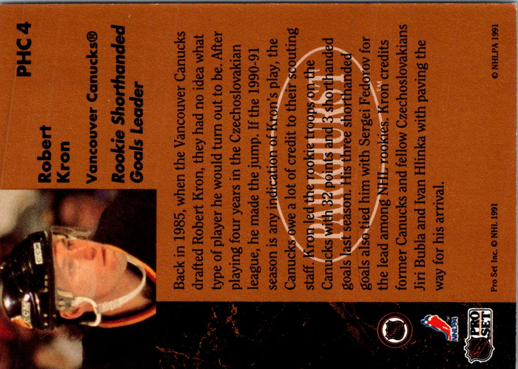 This 1991 Parkhurst Robert Kron #PHC4 Vancouver Canucks card is a must-have for any Canucks fan! Featuring a classic photo of Robert Kron in his Vancouver Canucks uniform, the card is sure to be a great addition to any collection. The high-quality cardstock ensures a long-lasting piece of Canucks memorabilia that can be treasured for years to come. With a glossy finish that adds a beautiful touch, this card is sure to look great on display. Get your hands on this unique piece of Canucks history today!