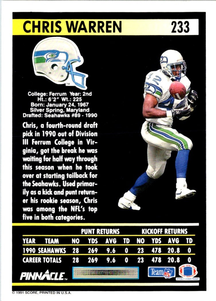 Description: 1991 Pinnacle Chris Warren #233