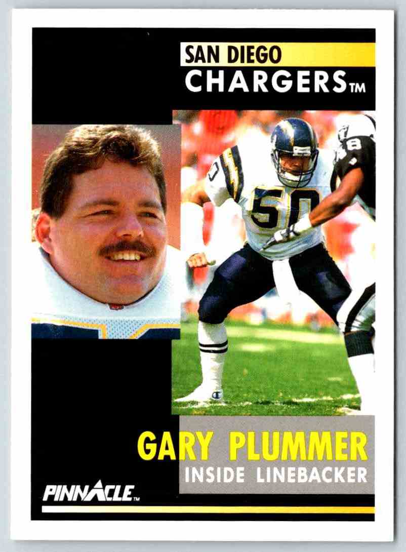 This 1991 Pinnacle Gary Plummer #207 card features an image of the Pro Bowl linebacker in his San Diego Chargers uniform. Plummer was a leader on the field, and an inspiration to his teammates. With this card, you can relive some of his best moments with the Chargers. The back of the card lists Plummer's stats, including his impressive career highlights. This would be a great addition to any Chargers fan's card collection.