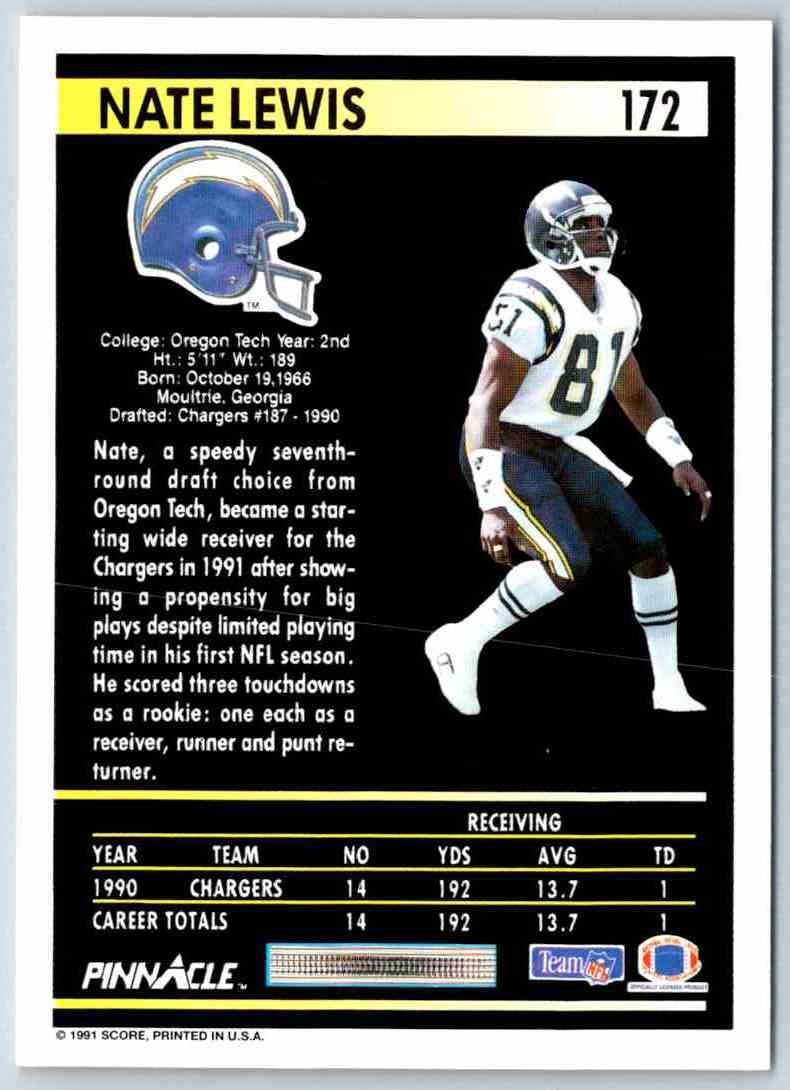 1991 Pinnacle Nate Lewis #172