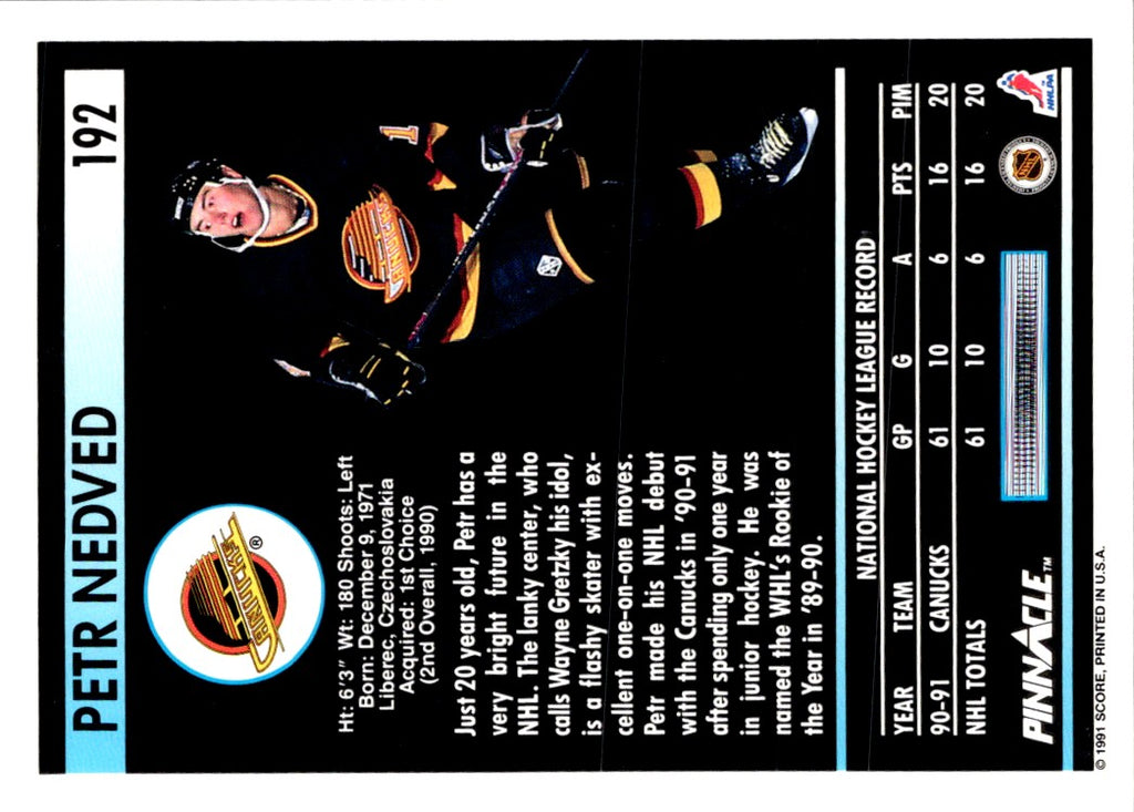 This 1991 Pinnacle Petr Nedved #192 Vancouver Canucks card is a must-have for any fan of the NHL! This card features a detailed image of Nedved in his Vancouver Canucks uniform on the front, with a list of his career stats on the back. It's a perfect addition to your collection, and a great way to show your support for the Canucks. Get your hands on this card today and add it to your collection!